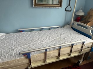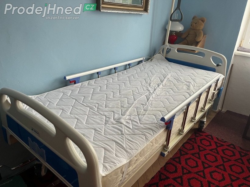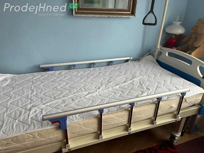 Prodám zánovní zdravotní mechanicky polohovací lůžko s hrazdičkou, postranními zábranami.Součástí může být/nemusí/ i matrace s podložkou.
