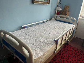 Rozměr postele 208x96x50cm. Váha 60kg. Nosnost 260kg. Další součástí postele je úplně nová nepoužitá antidekubitní elektricky nafukovací matrace.